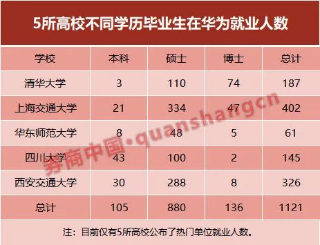 高校毕业生对就业行业的选择,也能够从毕业生在重点单位的就业人数反映出来。上海交通大学、西安交通大学、清华大学的就业单位数据显示,本校毕业生在华为的就业人数都远超其他单位的就业人数,分别达到402人、326人和187人。此外,字节跳动、腾讯、阿里巴巴等公司也是多个高校的热门就业单位。