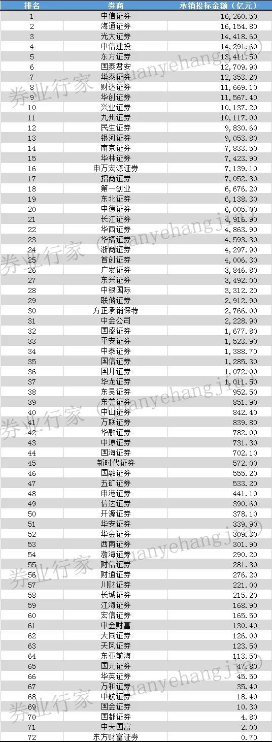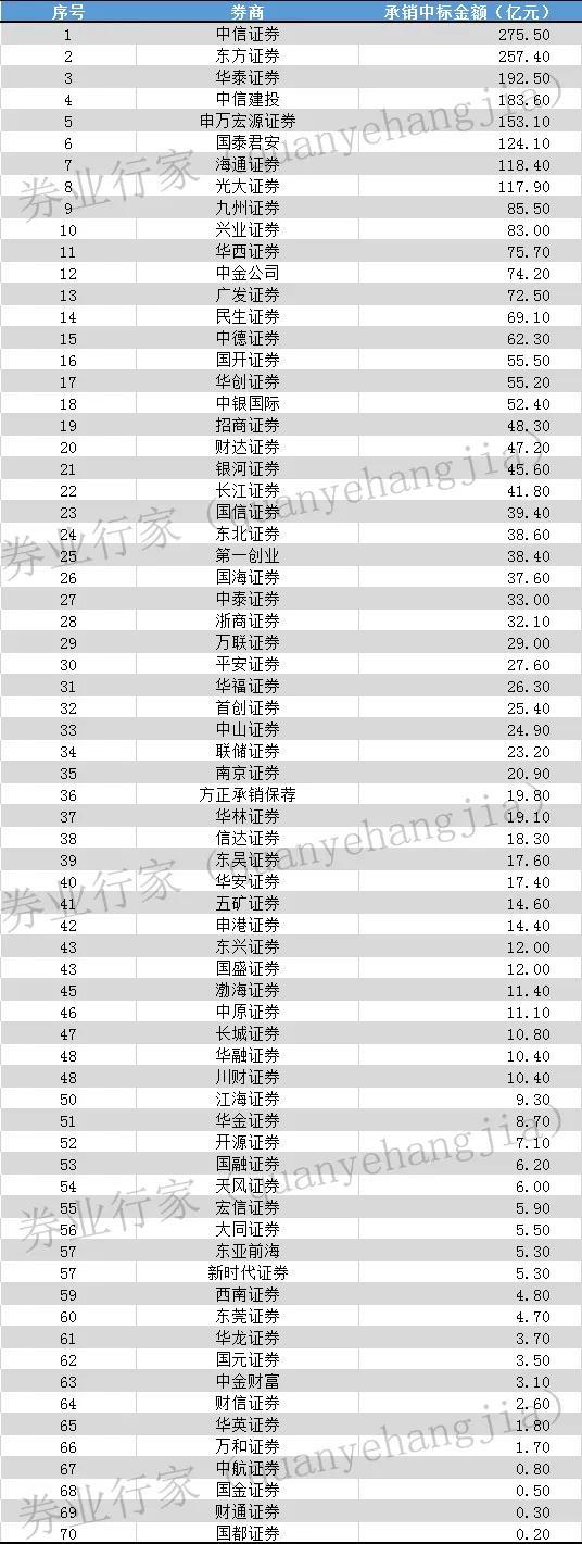 证券公司地方政府债券承销排行榜