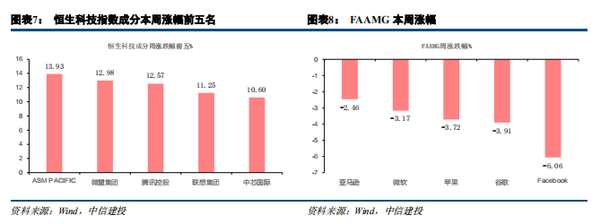 港股领涨全球权益市场,南下资金流入创历史新高。市场层面,本周恒生指数、国企指数和恒生科技指数分别上涨2.50%、3.33%和1.68%,港股领涨全球权益市场。本周港股万得二级行业多数上涨,其中电信服务(11.80%)和软件服务(11.19%)涨幅最大,食品饮料与烟草(-7.33%)和消费者服务(-6.58%)表现较差。估值层面,本周恒生指数PE上涨0.71至16.44倍,高于历史均值加一倍标准差上限,当前制药、生物科技与生命科学、耐用消费品与服装等行业的估值处于历史相对高位,而媒体、消费者服务等行业估值处于历史相对低位。近两周南下资金分别流入655亿港元和702亿港元,连创历史新高,远高于去年疫情全球肆虐时期水平。