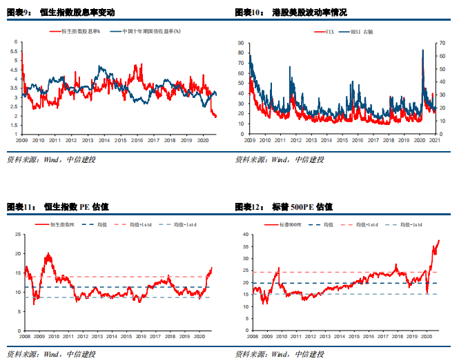 行业配置:估值收敛,先老后新。2020年在新冠疫情影响下,港股行业间估值极端分化,即高估值行业的估值仍处在历史高位,低估值行业的估值仍处在历史低位,不同行业间估值历史分位的标准差处在较高水平,即所谓的抱团行情。在盈利增速下行或较低阶段,资金往往集中在景气或业绩确定性较高的方向,从历史情况看,随着盈利的修复以及指数的上涨,港股行业间估值分化有望收敛,这种收敛不一定伴随着高估值板块的显著回落,而更多是通过低估值顺周期板块补涨实现,因此我们看好顺周期板块在2021年上半年的表现,建议关注机械、家具、银行保险等板块,同时,行业景气持续较强的新经济类板块在近期调整过后估值水平趋于理性,仍有较强的配置价值。2021年下半年,随着盈利进一步消化估值,新经济板块的估值也将更具吸引力,支撑分子端股价进一步上攻,新经济有望接棒老经济带动指数继续上涨,从近几轮牛市来看,新经济板块必不会缺席。建议关注电商、数字内容、本地生活和SaaS四个重点子赛道。