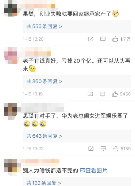 有网友就评论道:“果然,创业失败就要回家继承家产了”。