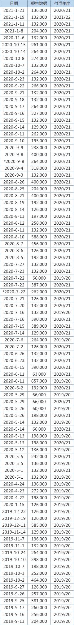 注:美国农业部对外发布每日和每周出口销售报告,出口商如果在单一工作日向单一目的地出口单一商品10万吨或以上,或者报告期内向单一目的地出口单一商品累计达到20万吨,须在第二个工作日美东时间15:00前向美国农业部报告。