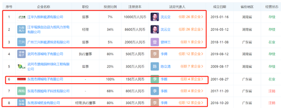 再如,李拥持有广州兰兴新能源投资有限公司(以下简称广州兰兴)5%股权,同时担任这家公司监事,广州兰兴的剩余95%股权由曾祥兰所有,曾祥兰是沈云立的配偶。