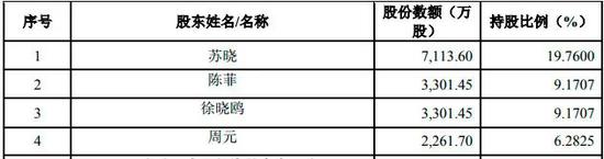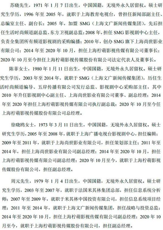 辅导备案报告显示,柠萌影业的共同控股股东及实际控制人为苏晓、陈菲、徐晓鸥、周元,四人合计直接或间接持有公司47.08%的股份,合计直接或间接控制公司52%的股份。