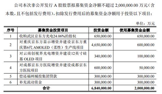 《每日财报》注意到,作为A股的“烧钱大王”,京东方自2001年上市以来仅定增融资就已经超过700亿元,如果此次定增能够成功落地,那么其在A股的定增总额将超过900亿元。