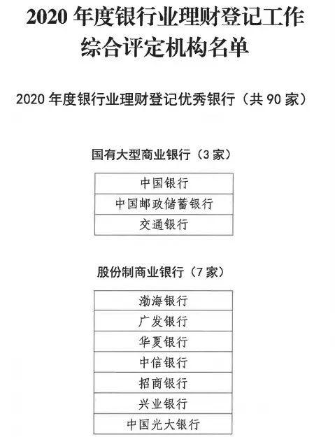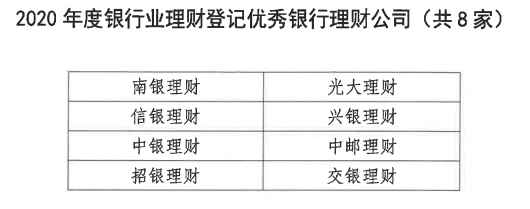 中国银行业理财登记托管中心日前发布《关于公布2020年度银行业理财登记工作综合评定结果的通知》。