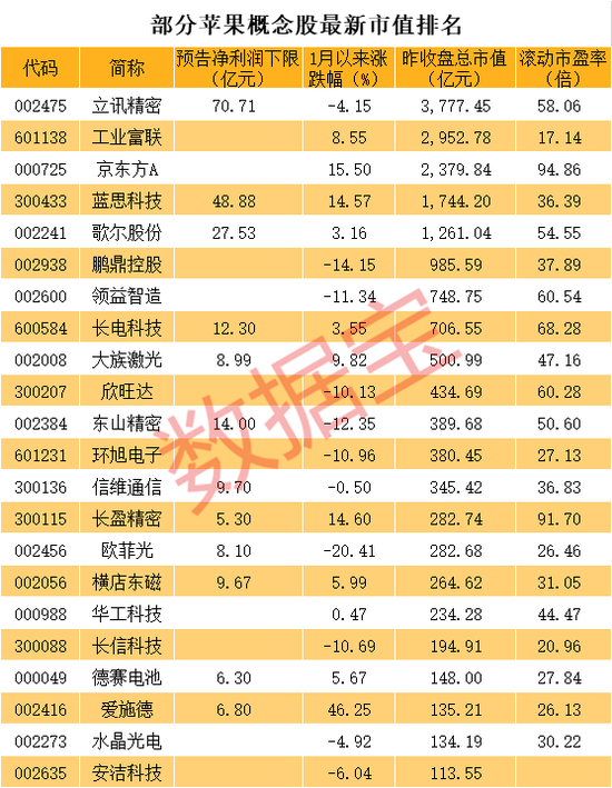 苹果概念早盘同样大跌超3%。个股方面,市值超千亿元的歌尔股份早盘大跌超8%,领益智造、蓝思科技、立讯精密等多只龙头股重挫超4%。消费电子板块近期利空频出,上周末美国国际贸易委员会(ITU)发起针对立讯精密337调查,起源于去年12月18日安费诺对ITC提出调查申请,指控立讯精密专利侵权。立讯精密本周跌幅已超10%,市值也在周一跌破4000亿元大关。