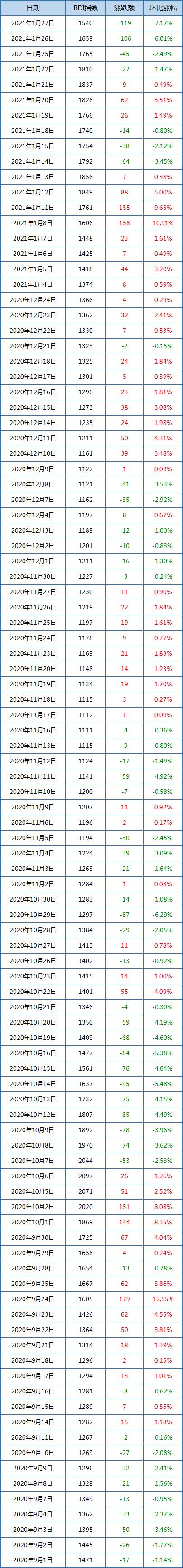 以下为西本新干线公布的2020年9月以来BDI指数: