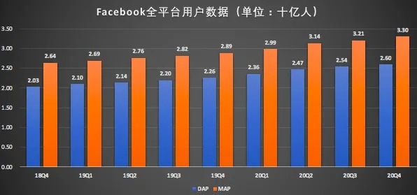 (数据来源/财报;制图/异观财经)从Facebook的营收构成来看,广告是其最重要的收入来源。用户数量的趋势变化,会影响广告客户投放的决策,因此也会直接影响Facebook的营收情况。财报显示,Facebook第四季度营收280.72亿美元,与去年同期的210.82亿美元相比,增长33%,高于市场预期的264.1亿美元。