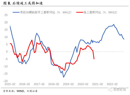 客观来讲,发生第一种情形的概率不高。如果发生第一种可能性,那对应的是政策“急转弯”的情形了,如果销售下降太快,融资卡太紧,正常的工期都无法保证的话,房子交付不了也会是个问题。如果是第二种情形,因为房地产销售不会断崖式下滑,房企又有融资会越来越紧的预期,那还不如加快开工,让房子符合预售条件,回笼现金流。现在有息负债被控制住了,也没办法在土地市场“血拼”了,不如把之前延后的工期完成,让房子能够交付。此前市场一直都在谈竣工为什么迟迟低于预期的问题,主要还是开发商把精力都放在扩大增量,放在拿地环节了。现在有息负债被控制住了,施工到竣工环节大概率会真正开始加速。