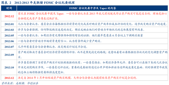 2012年12月,FOMC会议中首次提及放缓资产购买计划,理由是担心金融稳定与美联储资产负债表的过快扩张。