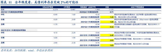 通过预测值可见,全年维度看,美国实际GDP增速突破4%,CPI增速2%左右,经济修复符合预期的情境下,美债收益率或将达到2.4%;而若经济增速进一步超预期,甚至带来美联储货币政策出现转向预期,则美债收益率存在进一步上行风险。