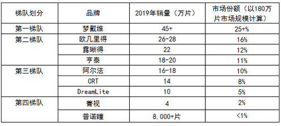 若按照2019年的销量进行梯队的划分,主要竞争者可划分为四个梯队。对比2018年行业竞争格局,不难发现市占率分布无明显变化,欧普康视保持行业龙头的地位。