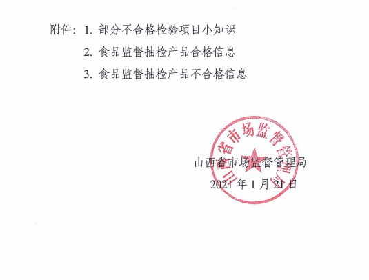山西省市场监督管理局 2021年第3期食品安全监督抽检信息通告