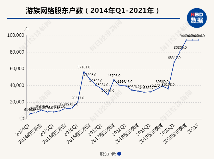 截至今日收盘,游族网络跌4.59%,报12.9元,成交额为5.71亿元,最新市值仅118亿元。该股自去年7月14高点28.88元以来,至今已经暴跌60%。而持有该股的投资者有点惨,截至2020年9月30日,该股股东户数高达9.46万户。