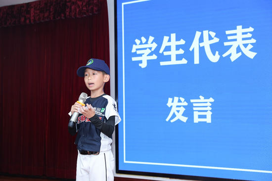 活动现场,作为第一届京师奥园棒球队队长黄翌航同学作了精彩的发言。他分享道,棒球是相对冷门的运动,但极具魅力,感谢大家的支持,让他与志同道合的小伙伴走在一起。黄翌航同学表示,将努力为棒球队开创一个好的起点,不辜负自己流下的每一滴汗水。