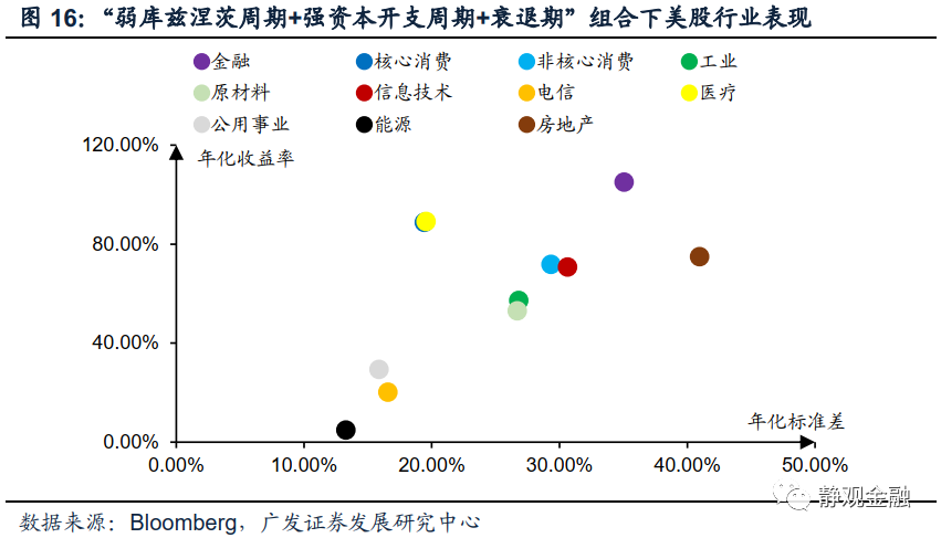 13. “强库兹涅茨周期+弱资本开支周期+早周期”组合金融与消费表现较好