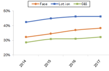 不过,也有业内人士表示,未来随着国家加大环保要求,中小企业的进入和产能释放受到限制,行业落后产能淘汰步伐加快,行业集中度有望进一步提升。同时,安信证券也表示,由于小企业在资金和规模等方面的劣势,上游原材料木浆波动对其影响较大,而大企业可以利用资金优势囤积木浆等原材料和利用品牌优势升级产品矩阵和直接提价来对冲风险,在未来更具备优势从而抢占更大的市场份额。作为其中的典型代表,中顺洁柔通过低位囤积木浆、涨价价格传导及产品升级等手段对冲成本风险的成效显著,在18年木浆价格位居高位的情况下,公司的毛利率稳定,较17年仅同比下滑0.85pct,同时,由于小企业向下游价格传到机制较差退出市场,据天猫监测数据显示,公司的市占率由去年Q4的9.8%提升至11.4%。
