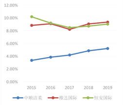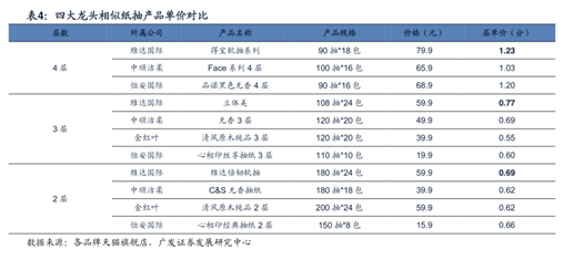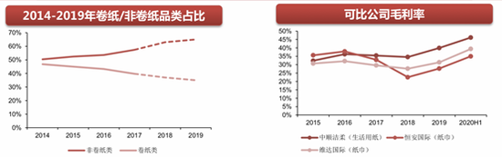 据安信证券表示,相比于恒安国际,公司的产品质量更佳,价格和毛利率也更高。恒安主要采取的是多元化战略,三大产业纸巾、卫生巾、纸尿裤协同发展,生活用纸方面的主要大单品心相印的价格相对较低,主打性价比,对公司抢占高端市场威胁较小。而与维达国际相比,两者同样具有优质的产品品质,且均定位高端市场,对公司高端市场的竞争影响较大。且相较之下,维达国际的产品单价比公司更高。不过,在毛利率方面,公司仍然具备明显优势。2015-2019年两者纸巾业务的毛利率差距越来越大,从2015年1.3pct,上升至2019年8.2pct。
