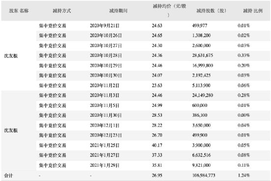 此前沈友根已套现43亿