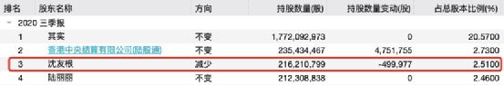 截至2020年三季报,沈友根仍是东方财富第三大股东。