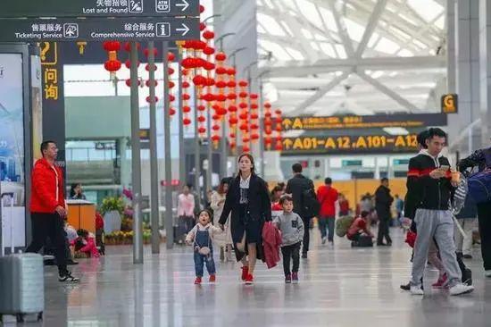 2018 年广州白云机场春运现场,这是全国三大航空枢纽之一