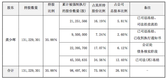 信息显示,龚少晖分别于2017年4月18日、2017年7月28日和2018年6月21日分三次质押上述股份。若参考华融证券申请执行来看,股份质押应该已逾期。目前,该部分股份纠纷尚处于公证处债务核实阶段。