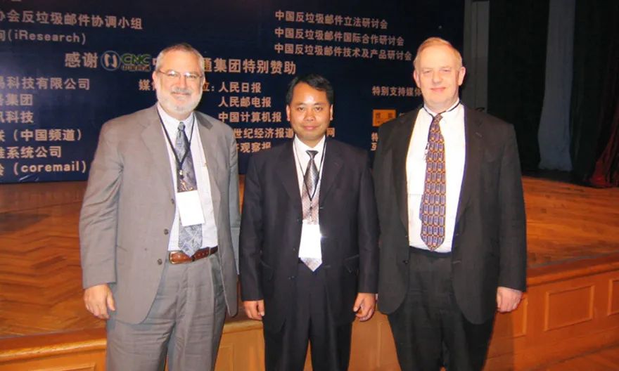 中国反垃圾邮件高峰论坛上,35互联总经理龚少晖(左二)和电子邮件发明人David H.Crocker(左一)、国际垃圾邮件黑名单组织(Spamhaus)专家