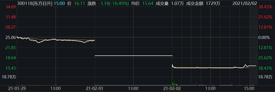 东方日升今日一度再跌停,截至收盘,报16.11元,跌16.49%,最近两日累计跌幅达33.18%。