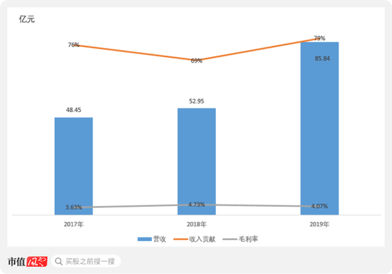 智度股份该类业务披露时归入数字营销业务,营收贡献逐年上升,也是2019年营收增长的主要驱动因素,但毛利率只有可怜的4%左右,全给别人打工了。