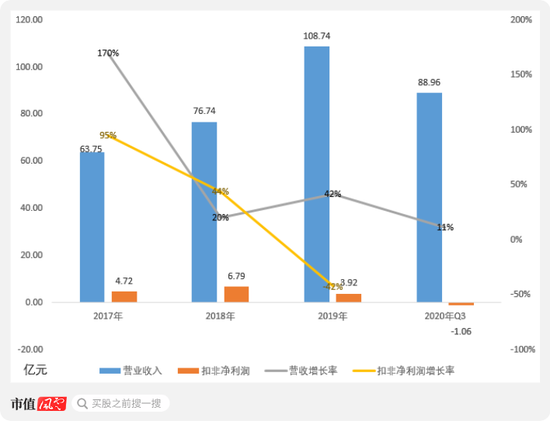 2020年前3季度,智度股份营收88.96亿元,继续增长11%,但扣非净利润直接亏损1.06亿元。
