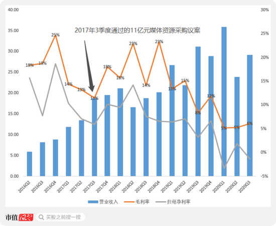 到了2019年,11亿媒体资源采购带来的热度褪去后,毛利率又承接前面2017年3季度的节奏继续下滑。