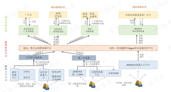 简单说Spigot通过自有(自己研发或购买)的免费软件吸引用户流量,通过软件中内置APP将用户导流至门户或电商网站,获取分成收入。