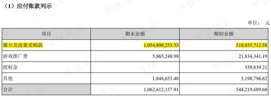 与之对应的是巨额的流量采购成本,2016年流量采购成本占智度科技营业总成成本的90.56%。虽然随后各年虽然没有继续披露,但2019年末,10.62亿元应付账款中,99.27%是应付媒体及流量采购款。