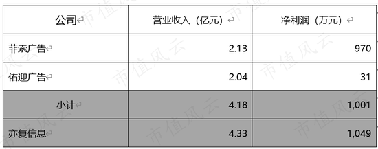 2013年成立的上海菲索广告有限公司(以下简称“索菲广告”)和2014年9月成立的上海佑迎广告有限公司(以下简称“上海佑迎”),是亦复信息的主要收入和利润来源。
