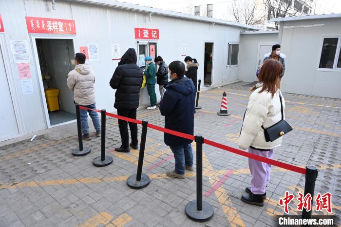 2月3日,呼和浩特市第一医院内,民众排队进行新冠病毒核酸检测。刘文华 摄