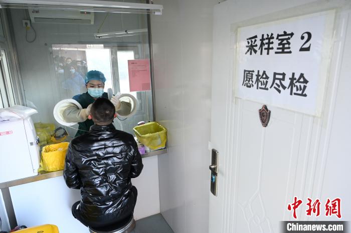 2月3日,呼和浩特市第一医院内,一位男士进行新冠病毒核酸检测。刘文华 摄