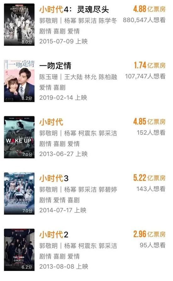 4部《小时代》总票房达17.91亿 图片来源:灯塔专业版