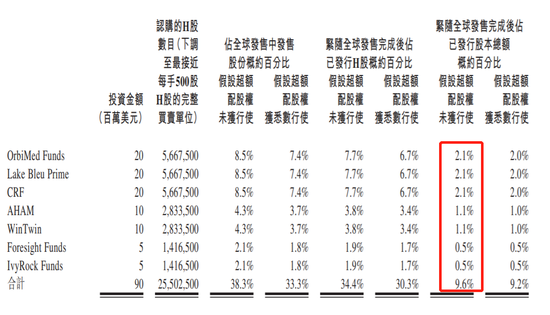 奥博资本认购2,000万美元;清池资本认购2000万美元;国新国信东吴海外基金认购2000万美元;Affin Hwang AM认购1000万 美元;WinTwin Capital认购1000万美元;Foresight认购500万美元;IvyRock 认购500万美元。此外,高瓴持股5.1%。