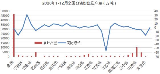 图2、2020年1-12月全国分省份焦炭产量(万吨)