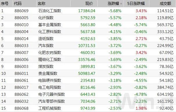 从板块跌幅来看,此前热门的有色金属、化工、汽车、煤炭等顺周期板块大幅下挫。