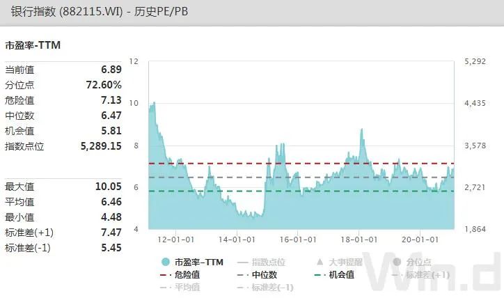 从银行板块当前估值来看,市盈率低于7倍,处于历史较低区间,且相对于其他板块而言,估值优势明显。