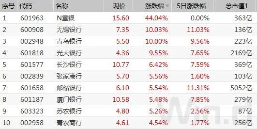 从周五市场表现来看,银行板块的大幅拉升成为市场的一大亮点,同时带动低估值的房地产板块联袂上涨。从个股表现来看,新股重庆银行44%涨停,无锡银行、青岛银行涨停收盘,光大银行盘中一度触及涨停。