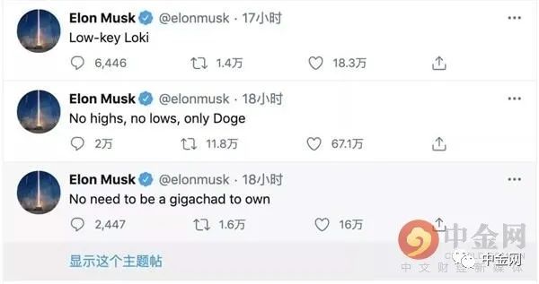 紧接着,马斯克又发了几条推特,他说,‘我们不需要成为亿万富翁就能拥有狗狗币,狗狗币才是人民的数字货币。我没喝多,也没情绪低落,心里只有狗狗币。’