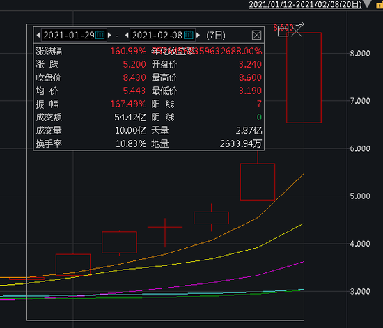 不仅如此,wind数据显示,最近7个交易日恒腾网络更是暴涨超160%,市值激增480亿港元。