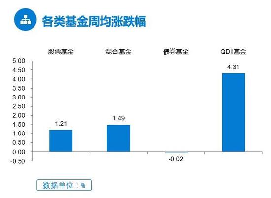 过去一周,股混型基金小幅度上涨,债券型基金略微下跌。海外市场方面,QDII基金上涨。
