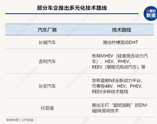 各大车企并没有把筹码完全押在纯电动技术路线上,而是纷纷加码多元化技术路径