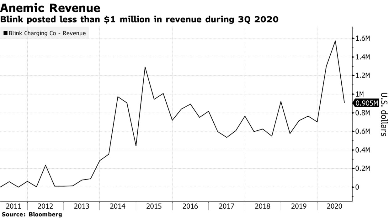 即使以行业内相当宽容的标准来看,Blink的收入也很微薄,2020年三季度收入不足100万美元,去年总收入预计为550万美元。该公司自成立以来从未实现过盈利。
