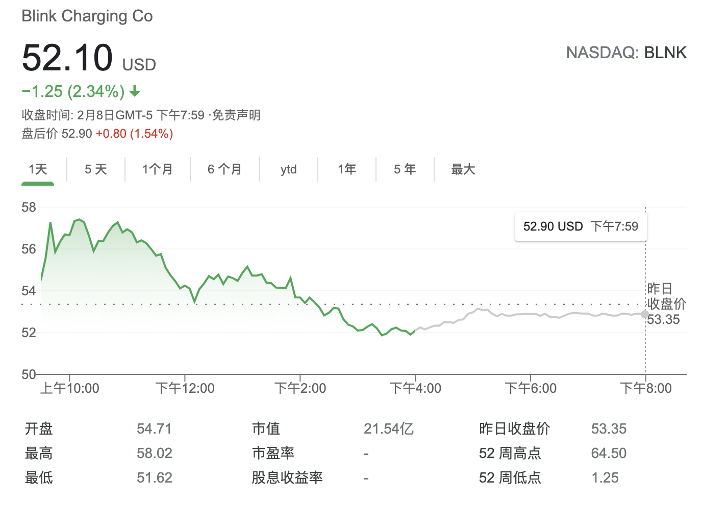 最近的市场热潮也为Blink注入了新的活力,该公司1月份通过发行股票筹集了2.321亿美元。私人投行Roth Capital Partners上周五建议买入该股,将其目标价定为67美元,较目前的水平高出29%。该公司股价周一下跌2.3%,报52.10美元。