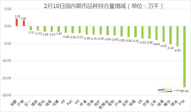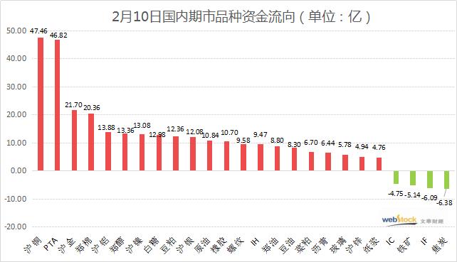 商品涨跌不一,且避险情绪愈发强烈,多品种大幅减仓,但交易所提高多品种保证金比例,文华商品指数资金流入量逼近286亿。全面飘红的有色金属最受资金青睐,强力吸金逾84亿,其中涨势凌厉的沪铜逆势增仓1.6万手,获得逾47亿资金流入加持,反映了市场浓烈的看涨情绪。化工品集体下挫,PTA单日减仓超过17万手,不过板块整体仍流入近69亿资金。双焦并未调整保证金比例,减仓过后,煤炭板块以逾6亿的失血量领先。